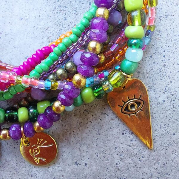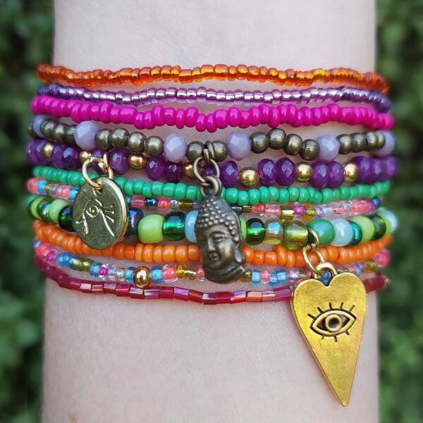 Set de 11 pulseras: AGATAS achatadas, cristales, mostacillas y metales.